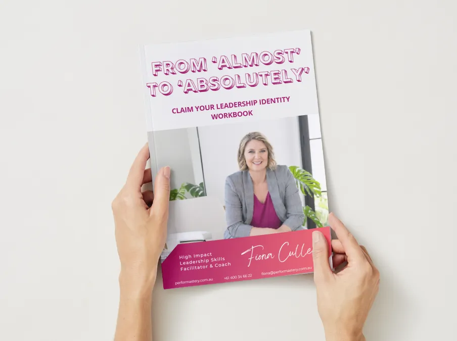 This free workbook, From Almost to Absolutely: Claim Your Leadership Identity, guides you through powerful self-reflection prompts to help you: